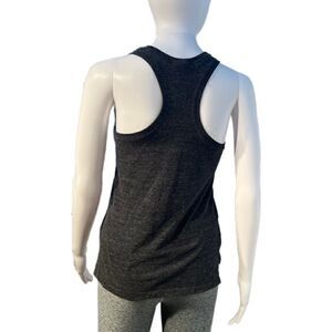 Dark grey Nike racerback tank, worn once and in like new condition! This tank has a slim fit with spout hem, rounded neckline and front chest graphic logo. No obvious sign of wear or imperfection!