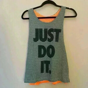 Reversible Nike “Just Do It” striped tank. This converts to an orange mesh tank. Great condition!