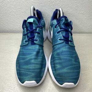 Elevate your activewear game with these Nike Roshe One Print sneakers. The blue and green geometric pattern adds a touch of style to your workout or casual wardrobe. Slip-on and lace-up closure ensures a secure fit during running and jogging, while the lightweight mesh upper material provides breathability.