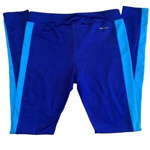 Nike Running Full Length Hi Rise Leggings Blue Contrast Tuxedo Stripe Size M