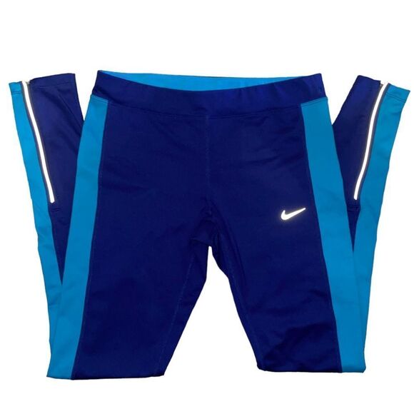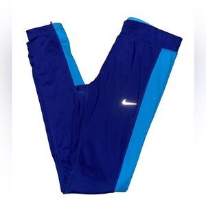 Nike Running Full Length Hi Rise Leggings Blue Contrast Tuxedo Stripe Size M