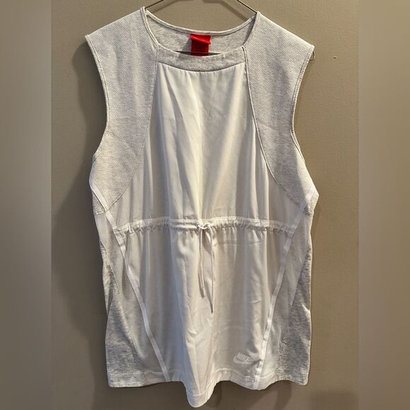 Nike Running Vest Women's White/Grey Size Small Drawstring Hybrid Tee T Shirt