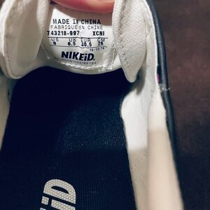 The uppers are offwhite canvas with the middle panel being a plaid checked grey, black white pattern. The swoosh is Tiffany Blue as well and the bottom soles. The insoels are the NIKE ID custom insoles. The pin striping around the shoe is also Tiffany Blue.