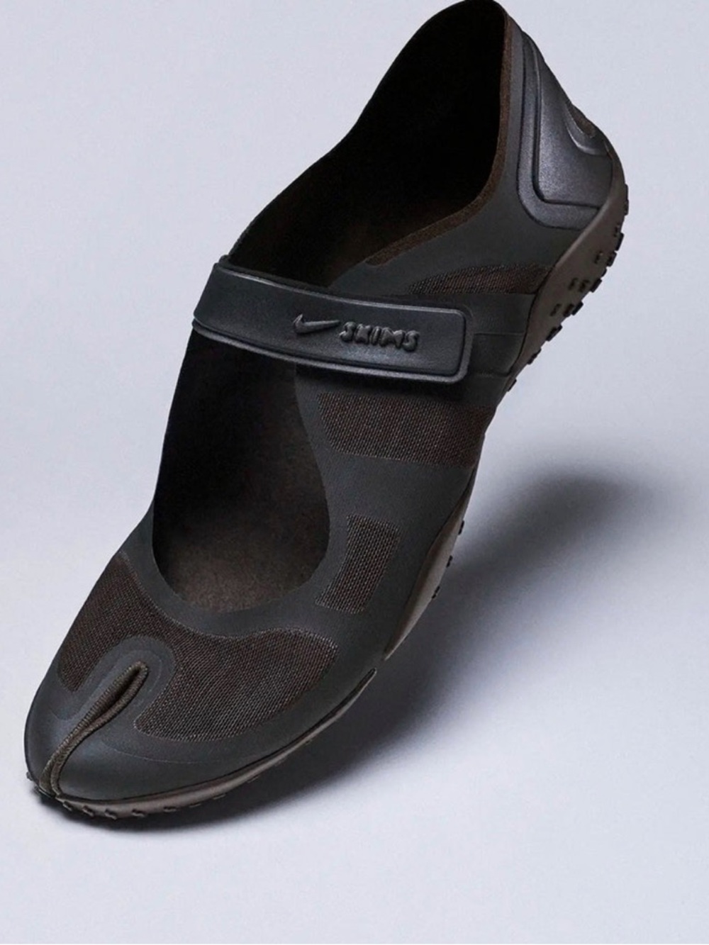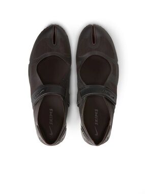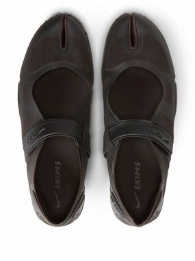Slip-on athletic shoe with a supportive Mary Jane strap. Split-toe design for natural toe separation. Breathable mesh upper with flexible rubber sole. Low-profile, grippy outsole for traction.