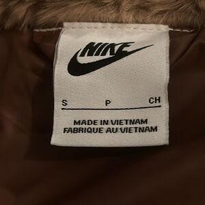 Nike Sportswear Plush Printed Faux Fur Jacket in Dk Driftwood Cacao Purple