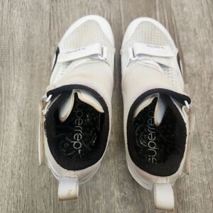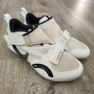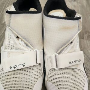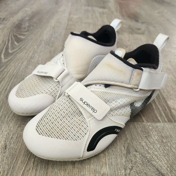 Womena Nike SuperRep Cycle White & Black Cycling Shoes Cleats. Size 7.5 US, 5 UK, 38.5 EU. Style Code CJ0775-100. No rips or tears. Clips are not included. No rips or tears. Shoes have been cleaned but some staining on the tops. See photos for condition.