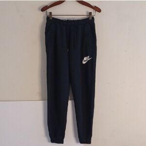 Experience comfort and style with these Nike sweatpants, featuring a tapered fit and elastic cuffed ankles. The drawstring waistband ensures a secure fit, while the soft fleece material offers a cozy feel. Perfect for athletic activities or casual outings, these joggers are a versatile addition to your wardrobe.