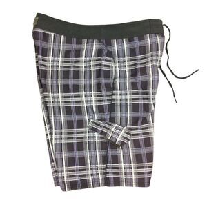 Nike Swim Board Shorts Mens Size 34 Trunks Gray Purple Plaid Water Sports Beach