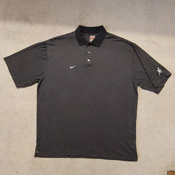 Black and white pin stripes Nike Team Shirt. Soft Rayon/Poly fabric. In good wearable condition. It's marked L but looks more like and oversized L or XL. See measurments