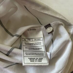 Cotton, good condition, small spot on back right sleeve.