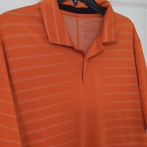 Nike Tiger Woods Orange Striped Lightweight Golf Polo Shirt. Men's Medium.