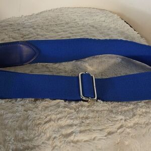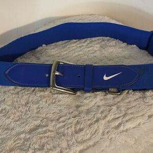 This blue faux leather and elastic unisex Nike baseball/softball athletic belt is a one size fits most with an adjustable band. Silvertone buckle. In excellent condition. All offers are welcome.
