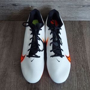 Elevate your game with the Nike Men's Vapor Football Cleats. Featuring a sleek white design with vibrant orange accents, these cleats offer both style and performance on the field. Experience superior traction and comfort with every step.