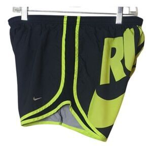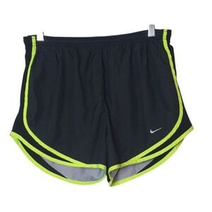 Nike Women's Running Shorts M Black Neon Yellow Dri-Fit Sporty Athletic Shorts