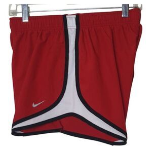 Nike shorts, Dri-Fit shorts, running shorts, athletic wear, red shorts, gym apparel, women's activewear, lightweight shorts, workout gear, sports shorts, fitness clothing, elastic waistband, nike med, nike women medium shorts,