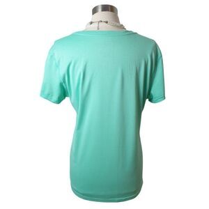 Nike t-shirt, women's activewear, Dri-FIT shirt, V-neck top, mint green, moisture-wicking, workout shirt, breathable T-shirt, casual wear, size L, Nike apparel, short sleeve, athletic top