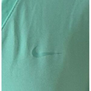 Elevate your activewear with this Nike Dri-FIT t-shirt. Designed for comfort and performance, it wicks away moisture, keeping you cool and dry. The mint green hue adds a refreshing touch to your wardrobe, while the V-neck offers a flattering fit, making it an ideal choice for workouts or casual outings.