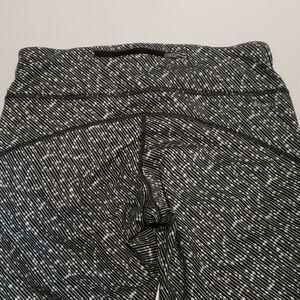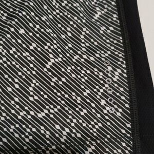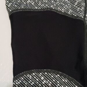 Excellent condition vented mesh behind knee great pattern and thicker waistband zipper pouch in back for personal items and reflective markings on legs and check on front also reflective. There is a drawstring at waistband for perfect fit capri length