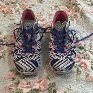 Nike free purple and pink checks size 8 1/2 TR fit 5 in good condition