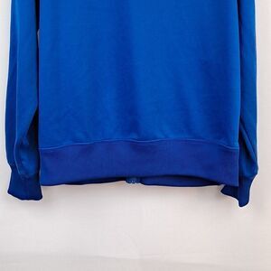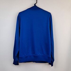 . Full zip front, ribbed stand collar, cuffs and bottom. Stripe down arms, zipper pockets. Measures 50" chest, length is 29". Great condition!
