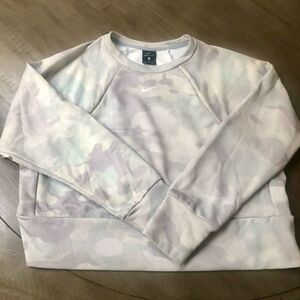 Nike Rebel dry crew, light toned camouflage sweatshirt in soft colors of blue and grey. Featuring sweat wicking technology. Length 20”, Width 21” pit to pit. Great condition. Size Medium.