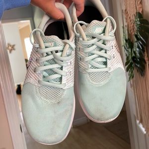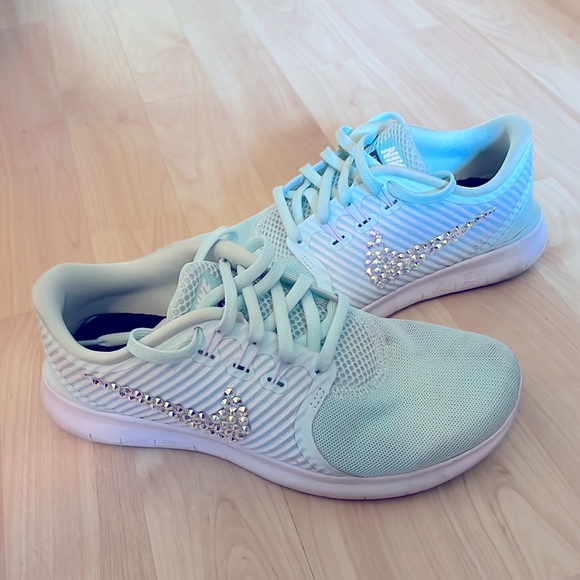 Need a cleaning but still have tons of life left. All crystals are still intact and none are loose! The color is more of a seafoam/blue color.