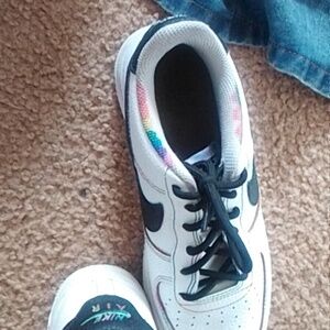 these are some Nikes I can't fit anymore I tried to clean the besides I can they have a little damages in two or one creases and I designed them by myself also a six man