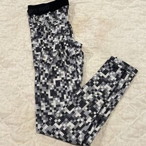 Nike pro dry fit skinny fit spandex black gray and white gently worn size small cool print