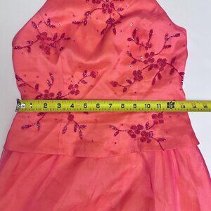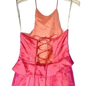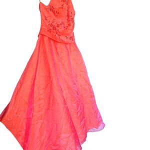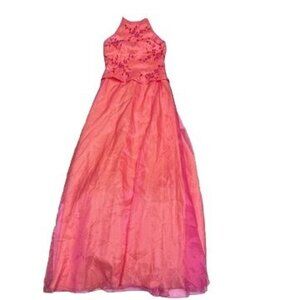 Niki Livas Pink Orange Embroidered Halter Dress With Corset Back Sz 6 Ball Gown