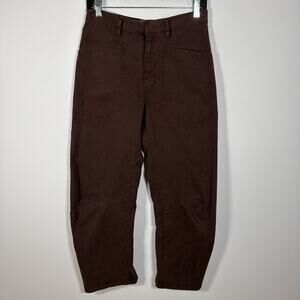 Niki Lotan Shon Pant Cotton Twill Tapered Stretch Brown 00 Barrel Leg Slouchy