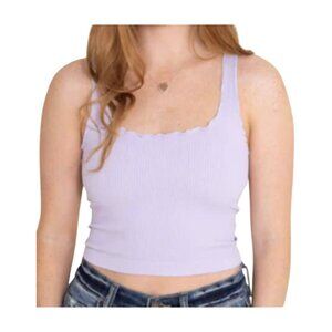 NikiBiki Crop Top Size XS Lettuce Edge Waffle Knit Lilac Sleeveless Stretch