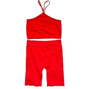 Nikibiki Fiery Red Biker Shorts & Halter Bralette