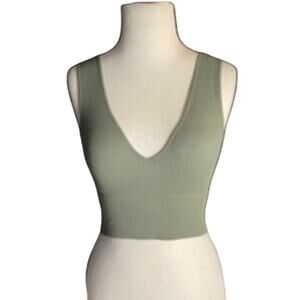 Nikibiki Sage Green Ribbed Crop Tank Top Small Minimalist Y2K Style