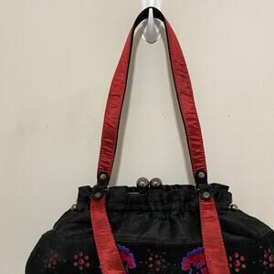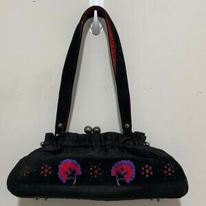 Nikita Lynn Black Embellished Embroidered Shoulder Bag Kiss Lock Closure