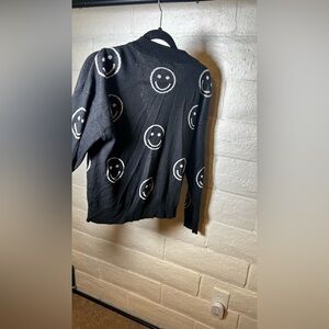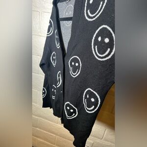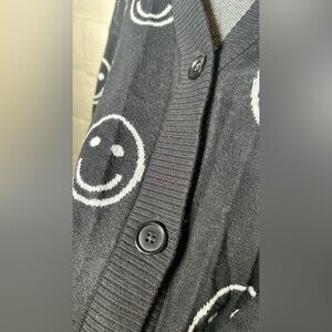 Nikka K Smiley Face Cardigan Sweater Black / White Hippie Vibes