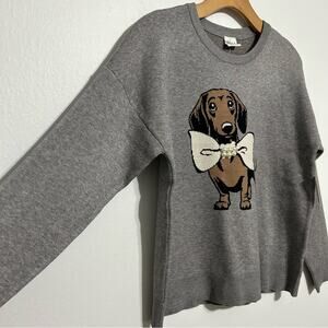 Nikka K graphic novelty gray sweater Dachshund Dog Bow Pearl Christmas NEW sz L