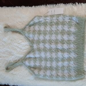 nikkak Fuzzy Soft Tank Top Size Large Sage & White Checker Pattern New with Tags Bin Tops