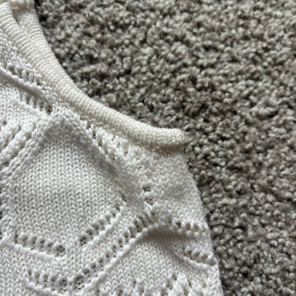 Nikkak White and Blue Ribbed Crop Tank Top Floral Embroidery Sz M Boho Summer