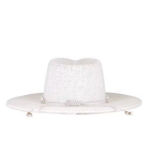 Nikki Beach Angel Hat in White Toyo Straw Drawstring Wide Brim