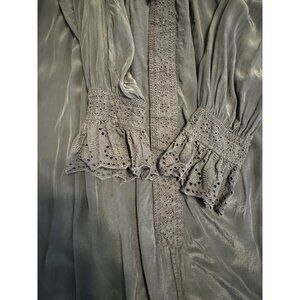 Nikki Chasin Small Sonnet Dress Size Small Ruffle Collar Cuff Eyelet Button Maxi