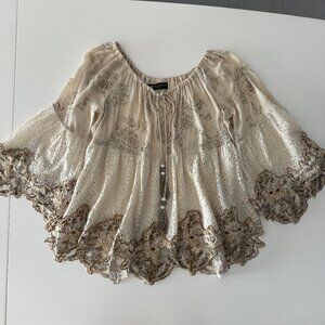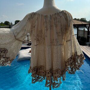 Nikki Danielle Boho Embordered Top Beige, Size Fits All