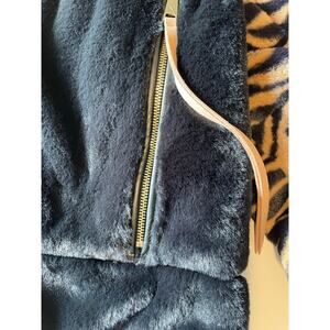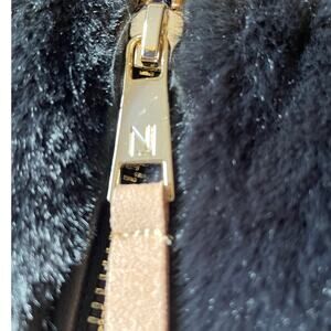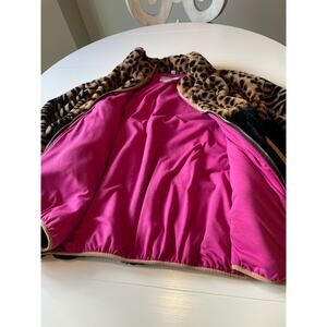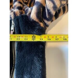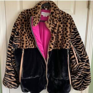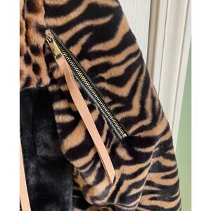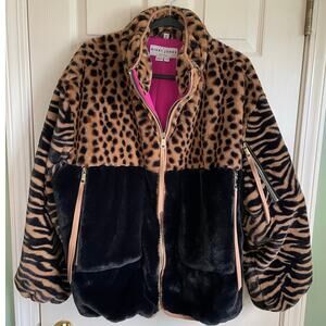 Nikki Jones Multi Print Faux Fur Jacket Balloon Sleeves Pockets Sz L Mob Wife