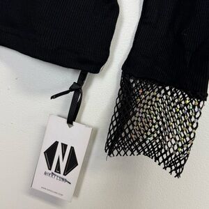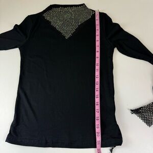 Nikki Lund Shirt Womens Small Black Long Sleeve Tee Stretch Rhinestone NWT