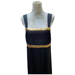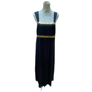 Nikki Mae Black Gold sequinned trim Empire Waist Evening Prom Maxi dress size 20