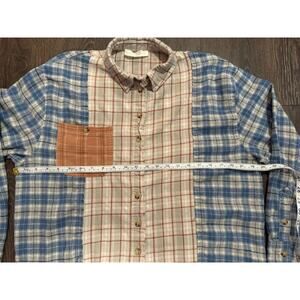 Super cute and soft flannel placket by American Threads Size Small. Measurements are in pics and there is a small flaw I noticed and it is last picture. Price reflects this.