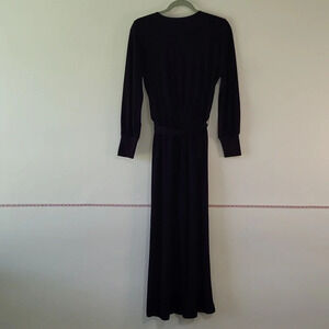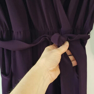 Nikki Poulos Jumpsuit Long Sleeved Pockets Belt Elastic Waist Wine Merlot Purple Small