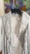 Nikki Valenti Linen Open Front Jacket Light Gray Ruffled Lapel Front Wmns Size L