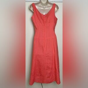Nikki Valentine 100% Irish Linen Sleeveless A-Line Dress Size 6 Coral