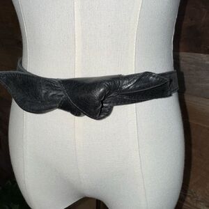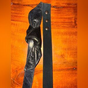 Nikki Jaffa Black Leather Belt w/ Knotted Detail & Snap Closure