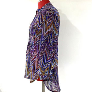 Nikkies Threads size S sheer colorful popover blouse hi low hem relaxed retro